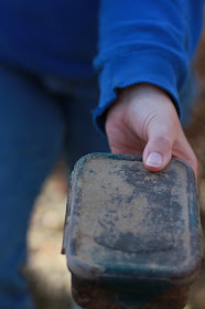 After a few wrong turns and some back tracking, and plain old snooping around we finally found the box! Sometimes you really need to look hard in the branches and brambles.